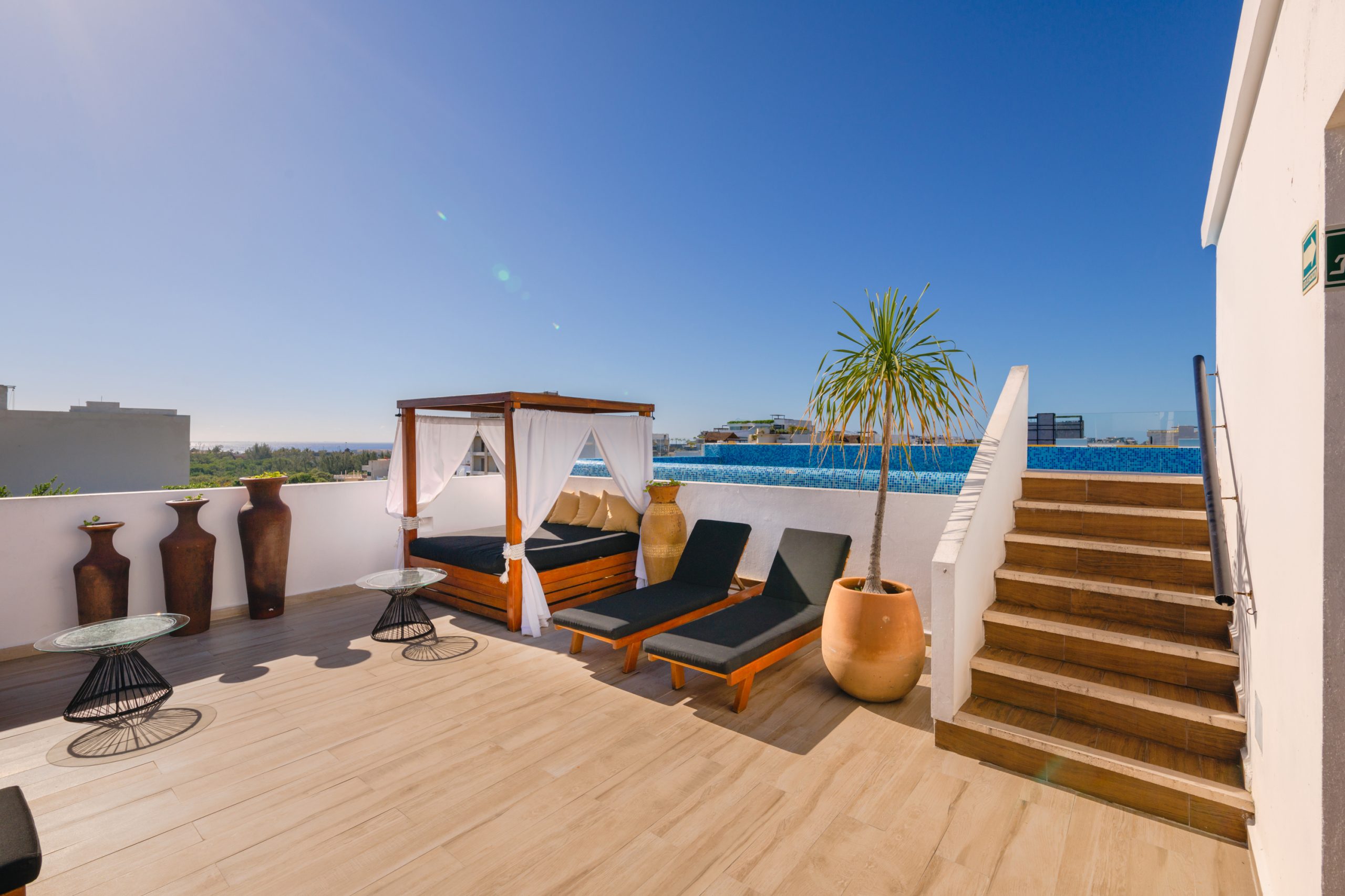 Nuestros hoteles tienen convenio con Martina Beach Club, un lugar fantástico frente al mar, donde nuestros huéspedes pueden disfrutar de un camastro en el área de playa con un consumo mínimo en alimentos y bebidas a partir de $300mxn. Para más detalles comuníquese con nosotros.